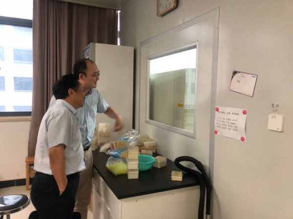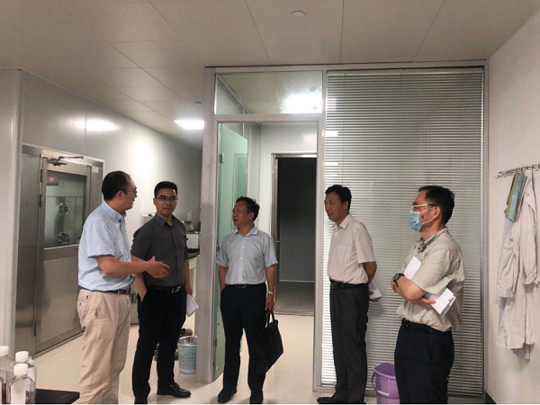 韩伟研究员向两位专家介绍了团队的科研情况,陪同两位专参观了实验室,钱立庭院长和放疗科钱东主任对团队的工作给予了充分肯定,希望以后进一步加强交流与合作。