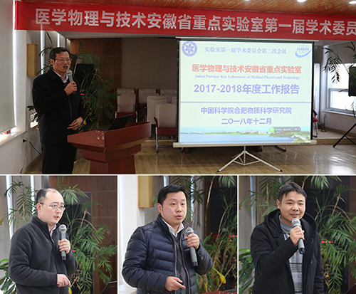 实验室主任储焰南研究员汇报了实验室2017-2018年度工作情况;韩伟研究员、沈成银研究员、马祖长研究员分别做专题报告,汇报了《等离子体肿瘤治疗研究进展》、《医用质谱工作进展》和《智能化健康促进服务关键技术研究进展》。