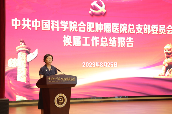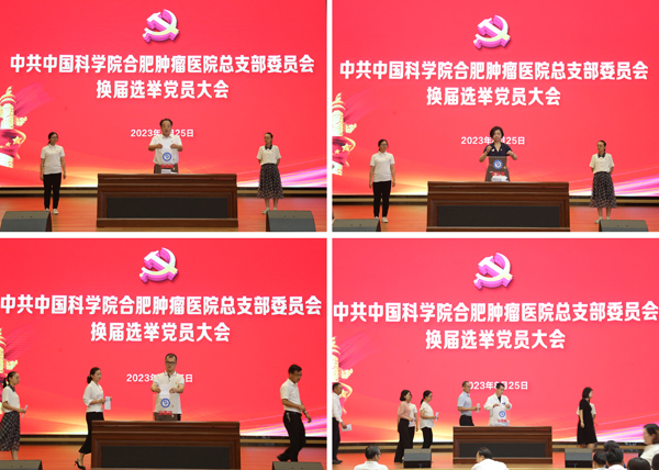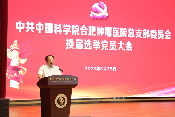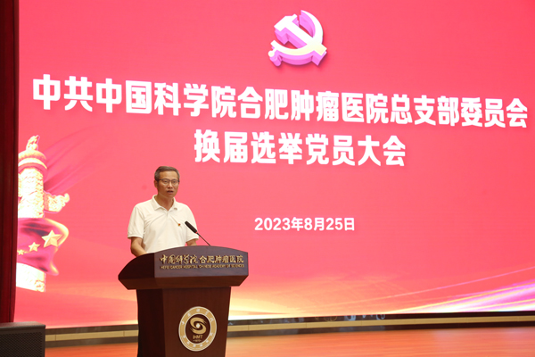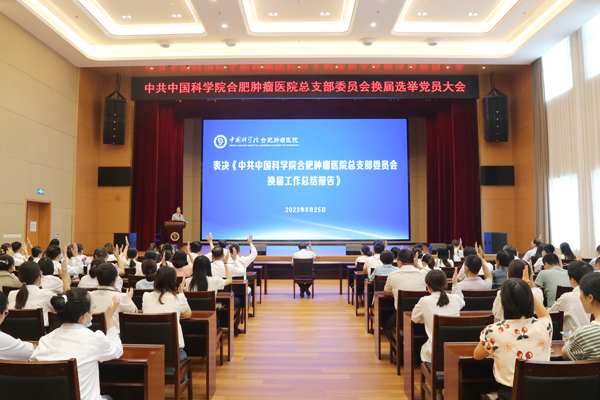 2023年8月25日下午,中共中国科学院合肥肿瘤医院总支部委员会换届选举党员大会在医院多功能厅召开,会议审议了本届总支部委员会工作报告,选举产生了新一届总支部委员会委员,中国科学院合肥肿瘤医院全体党员参加了会议。会议由中国科学院合肥物质院健康所党委委员、医院副院长林源主持。