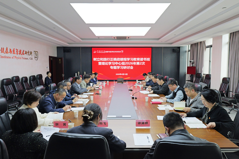 4月13日下午,中国科学院合肥物质院健康所举办树立和践行正确政绩观学习教育读书班暨理论学习中心组2026年第2次专题学习研讨会。合肥物质院副院长屈哲到会指导,党委办公室主任邓九安列席会议。会议由健康所党委书记王宏志主持,所领导班子成员、所党委委员、医院党委委员、各党支部书记参加会议。