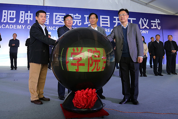 2016年10月28日上午,中国科学院合肥肿瘤医院项目在合肥市高新区举办开工奠基仪式。安徽省委常委、合肥市委书记吴存荣,中国科学院党组成员、秘书长邓麦村,安徽省卫计委主任于德志、中科院合肥研究院院长匡光力共同为项目启动水晶球。仪式由中科院合肥研究院副院长江海河主持。