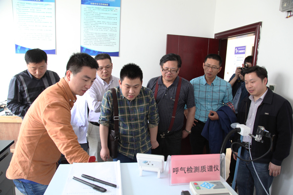 座谈会结束后,储焰南副主任带领安徽医科大学二附院的同志,对医用光谱质谱研究室进行了参观,重点对协商项目中需要使用的质谱仪器进行了详细介绍,并且亲自进行了呼气测试示范。
