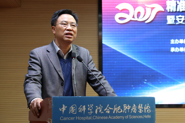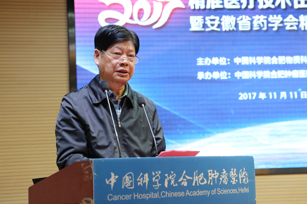 11月10日-12日,由中科院合肥研究院、安徽省卫计委主办,中国科学院合肥肿瘤医院、安徽省药学会精准药物治疗专业委员会承办,安徽省临床肿瘤学会、安徽省精准用药技术工程实验室、医学物理与技术安徽省重点实验室协办的2017年国家级继续教育项目“精准医疗技术在肿瘤防治中的应用”学术研讨会暨安徽省药学会精准药物治疗专业委员会学术年会在合肥科学岛召开。本次会议吸引了全国20多个省市的共200余名临床医师专家、基础研究学者等参加学术研讨。中科院合肥研究院院长匡光力、安徽省卫计委副主任李劲风、中科院合肥肿瘤医院院长王宏志、安徽省药学会精准药物治疗专业委员会主任委员刘青松等领导为大会致辞,会议开幕式由中科院合肥研究院副院长江海河主持。