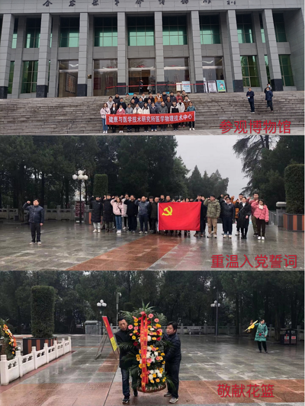 11月26日上午,医学物理技术中心全体职工及学生抵达金寨县梅山镇后,第一站参观了金寨县革命博物馆,学习老一辈无产阶级革命家的担当精神,接受爱国主义和革命传统教育;随后,医学物理技术中心主任杨良保研究员和副主任沈成银研究员在红军广场向革命烈士纪念塔敬献花篮,缅怀先烈;在活动的最后,医学物理技术中心全体职工及学生在纪念塔前重温入党誓词,坚定信念,增强责任感。