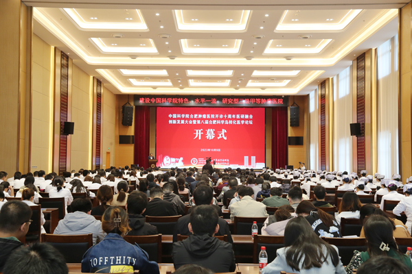 2023年10月9日,中国科学院合肥肿瘤医院开诊十周年医研融合创新发展大会暨第八届合肥科学岛转化医学论坛在肿瘤医院新院区成功举办。中国科学院院士、中国科学院上海营养与健康研究所生物医学大数据中心首席科学家赵国屏,中国工程院院士、中国科学院合肥物质院安光所学术所长刘文清,中国工程院院士、合肥综合性国家科学中心能源研究院院长李建刚,中国科学院合肥物质院院长刘建国,中国科学技术大学副校长、合肥综合性国家科学中心人工智能研究院院长吴枫,安徽医科大学第一附属医院院长孙倍成,安徽省科技厅社会发展处副处长陈鹏,蜀山经济技术开发区党工委书记、管委会主任卢磊等各级领导,肿瘤医院合作单位、属地政府代表,合肥物质院部分领导班子成员、各职能处室领导,健康所领导班子及各研究中心主任、部分科研人员和研究生,肿瘤医院领导班子及职工代表等500余人,线上直播参与6000余人,共庆肿瘤医院开诊十周年,共话医研融合新发展。大会开幕式由中国科学院合肥物质院健康所所长刘青松主持。