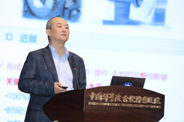 中国科学院合肥物质院健康所党委书记、中国科学院合肥肿瘤医院院长王宏志为大会致辞。他指出,医院的前身是中国科学院合肥物质院的职工医院,近十年来在中国科学院暨合肥物质院、属地政府及主管部门、各合作单位的大力支持下,医院怀抱对科研人员健康保障、医疗事业发展、医研融合创新的责任和使命担当,完成了向国家三级肿瘤专科医院的升级转型,并逐步构建了国内创新的科研单位办医的体制运行机制,确立了国际先进的转化医学发展理念,产出了一批医研融合创新成果,吸引了数以百计的来自海外及全国各地的优秀科研及医疗人才。站在新的历史起点,全体医院人将继续发扬“敢为医研融合探路者,争当转化医学追梦人”的精神品质,为建设中国科学院特色、水平一流、研究型三级甲等肿瘤医院不断努力奋斗。