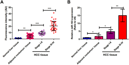 miRNA是人体的一种重要RNA,研究表明它特异性强,可以作为很多疾病的诊断标志物。生物电子技术研究室研究人员基于等温滚环扩增(RCA)技术,采用光电检测方法检测特异性标志物受激发出的荧光强度,设计了一种便携式miRNA快速检测系统,解决了现有miRNA检测方法系统复杂,操作繁琐,检测时间长的缺点。miR-183是miRNA的一种,其异常表达可以作为肝癌疾病的标志。相关研究人员利用设计的检测系统检测了肝癌患者和非肝癌患者血液及肝组织中的miR-183,结果表明系统可以明显的区分肝癌患者和非肝癌患者。