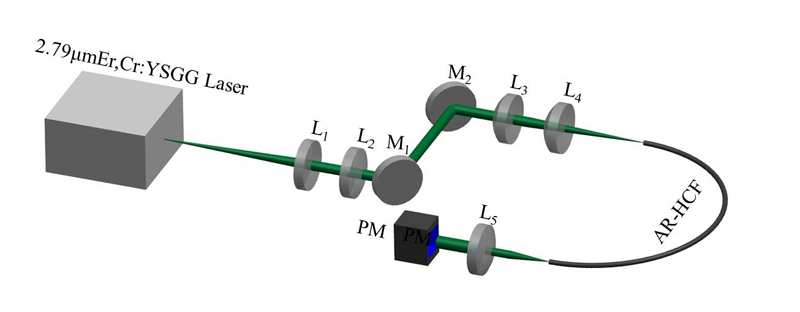 激光医疗仪器通常需要通过一个灵活的导管将其发出的激光传送到患者治疗处,但传统的中红外激光医疗仪器大多采用的是导光臂传输激光。然而,传统的导光臂传输激光方式存在诸多问题,如系统结构复杂、传输效率低、不够灵活等。采用光纤传输可解决上述问题,但实芯光纤的材料在中红外波段的激光损伤阈值较低,无法满足3 μm波段铒激光医疗器械高能量密度的导光需求。所以,研究团队设计研究一种结构简单、耦合传输效率高、损伤阈值大且可柔性传输的AR-HCF替代导光臂传输激光能量。
