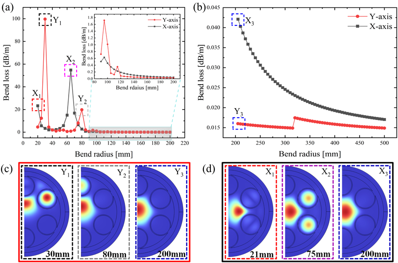 图3. 不同弯曲半径和弯曲方向下AR-HCF的损耗