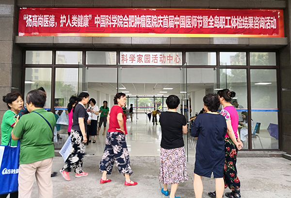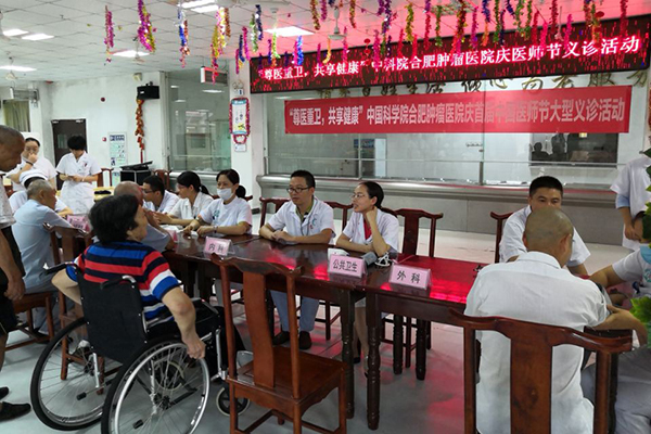 为迎接8·19首个中国医师节,大力弘扬“敬佑生命、救死扶伤、甘于奉献、大爱无疆”的卫生健康崇高精神,营造全社会尊医重卫的良好氛围,8月17日下午,我院组织两支义诊团队共20余名医护人员分别在合肥蜀山区科学家园和金色家园养老中心开展爱心义诊活动。