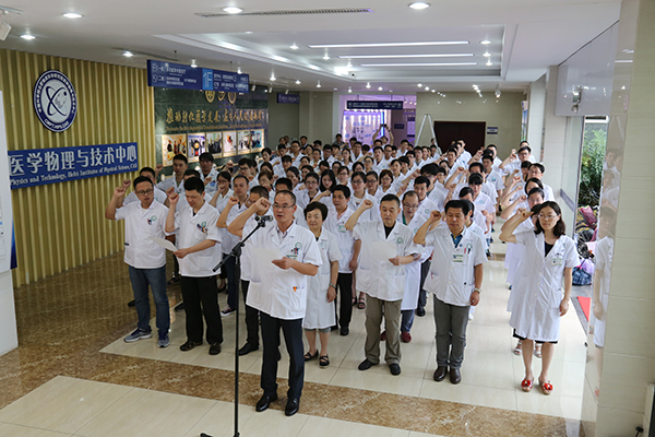全院170余名医生在《中国医师宣言》前宣誓,用行动和心声对医师节许下铿锵的诺言。