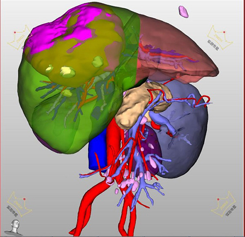 近日,中国科学院合肥肿瘤医院腹部肿瘤科成功为一名59岁男性巨块型肝癌患者进行了三维重建辅助扩大右半肝切除术,解决了患者在其他医院无法手术治疗的难题,术后患者恢复良好。