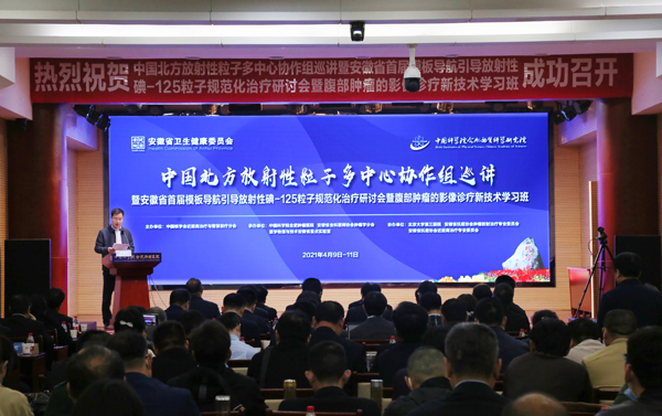 4月9日-11日,由中国核学会近距离治疗与智慧放疗分会主办,中国科学院合肥肿瘤医院、安徽省全科医师协会肿瘤学分会、医学物理与技术安徽省重点实验室承办的中国北方放射性粒子多中心协作组巡讲暨安徽省首届模板导航引导放射性碘-125粒子规范化治疗研讨会(安徽省继续医学教育项目)在合肥科学岛召开。会议邀请了全国及安徽省内200余位顶级放疗专家参会,肿瘤医院副院长王恩君主持大会开幕式。