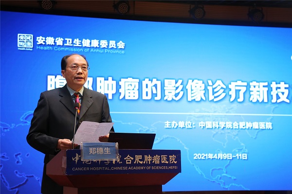 中华医学会安徽省数字医学分会主任委员郑穗生致开幕辞,他希望本次学习班的举办能够为安徽省暨合肥市影像诊疗技术整体水平的提升发挥重要作用,希望所有的参会人员能够有所收获、有所提高,为临床患者提供更加精准的诊断建议。同时,他也对中国科学院合肥肿瘤医院医学影像中心近几年的发展成绩表示充分肯定。
