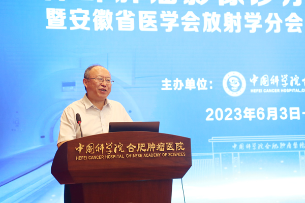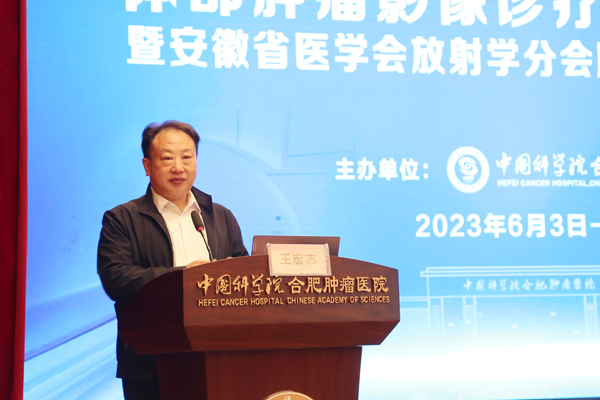 中国科学院合肥肿瘤医院院长王宏志研究员致欢迎辞,他简要介绍了中科院合肥肿瘤医院的发展概况,对各位省内知名的医学影像领域专家大咖能够到合肥肿瘤医院传经送宝表示热烈欢迎,并希望参加此次学习班的全省各地医学影像诊疗专业同仁加强学习交流,相互促进、共同提高,不断推动影像诊断新技术在肿瘤诊疗中的应用发展,提高肿瘤精准治疗水平。