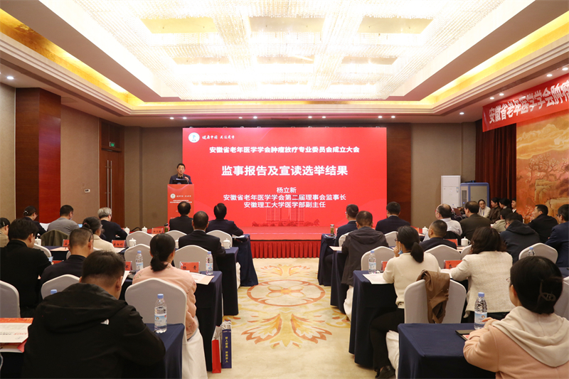 本次成立大会由安徽省老年医学学会副秘书长周燕主持,安徽省老年医学学会会长胡志、监事长杨立新、秘书长郑海洋,中国科学院合肥肿瘤医院副院长王恩君、院长助理胡宗涛等领导参加会议并致辞,来自省内30余家医院的委员共同列席会议。