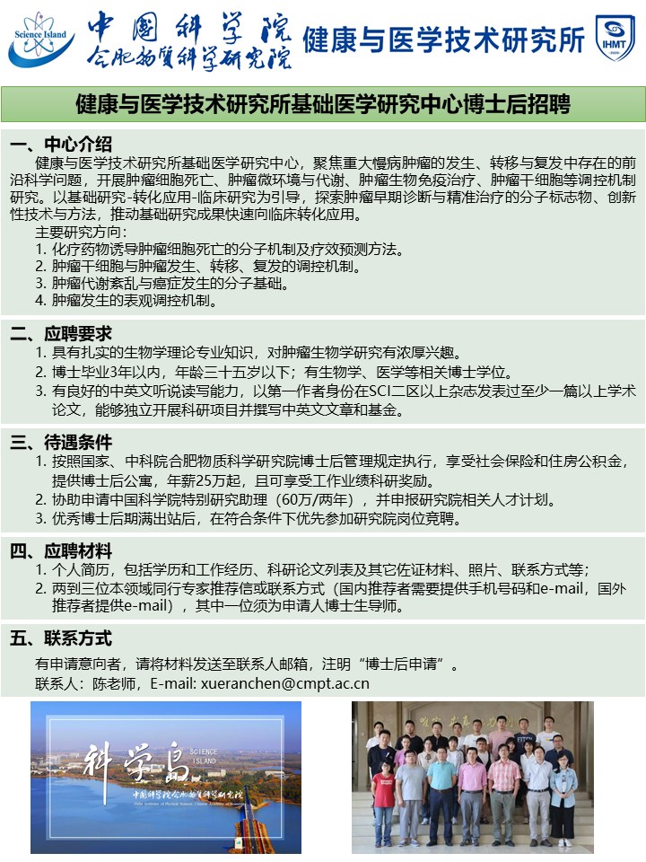 健康所基础医学研究中心博士后招聘公告