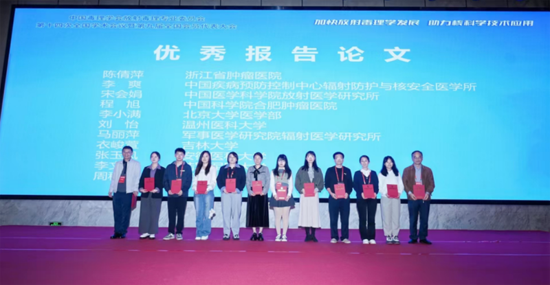 健康所韩伟研究员,成功当选第九届中国毒理学会放射毒理专业委员会副秘书长,并以《细胞死亡与放射性肠炎》为题进行了大会报告。肿瘤医院胡宗涛主任医师、楼建军副主任医师,受邀在肿瘤放射诊疗暨核医学专题分会场参与主持,同时胡宗涛主任医师以《放免联合在局部晚期NSCLC中的研究进展及思考》为题,进行专项汇报。肿瘤医院崔相利副研究员、王毅欣博士后、程旭博士分别就自身在放射毒理领域相关科研成果,与参会人员进行口头汇报交流。肿瘤医院刘楠主治医师等参与大会壁报交流及大会论文投稿,相关科研成果得到广大与会人员的认可。
