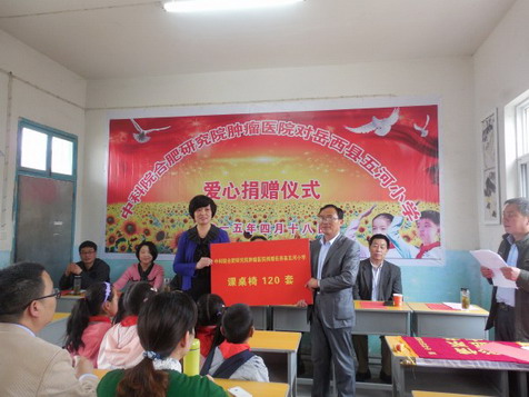 据悉,岳西县五河村小学现有学生117人,自2013年临床部党支部和岳西县五河党支部开展城乡基层党支部共建活动以来,临床部党支部通过调研了解到五河村小学由于经费紧张,破旧的课桌一直没有得到更换。为帮助学校有效改善学习环境,圆学生的“书桌梦”,党支部通过筹集资金,购买了120套课桌捐赠给学校。